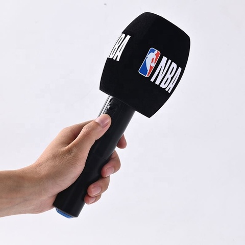 Cubiertas de impresión de espuma de micrófono de metal personalizadas parabrisas flocado con logotipo para estaciones de TV y entrevistas de reporteros